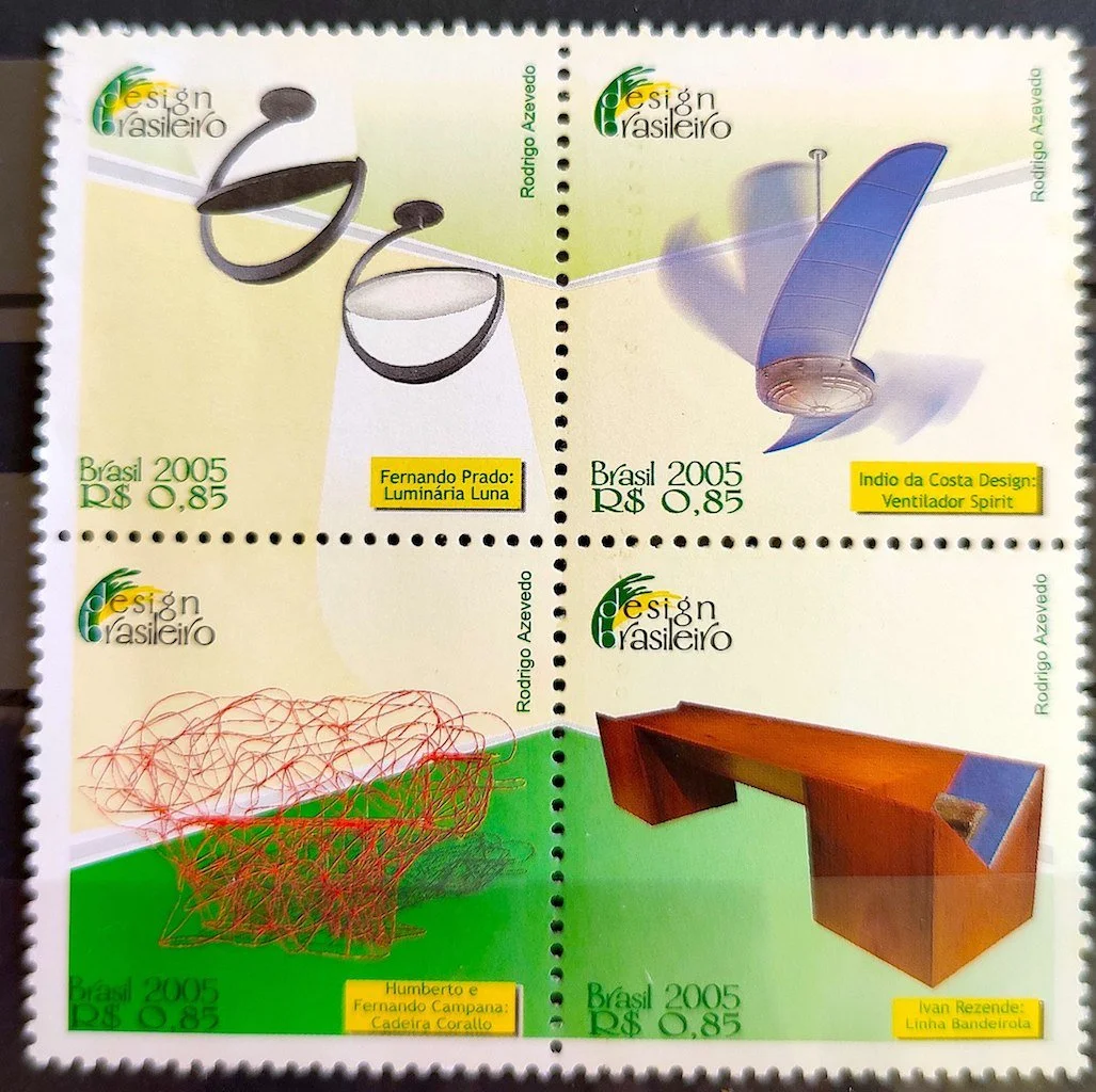 Um dos meus projetos (o ventilador Spirit, criado enquanto eu trabalhava na Indio da Costa A.U.D.T) virou selo comemorativo brasileiro ao lado dos Irmãos Campana. 😄